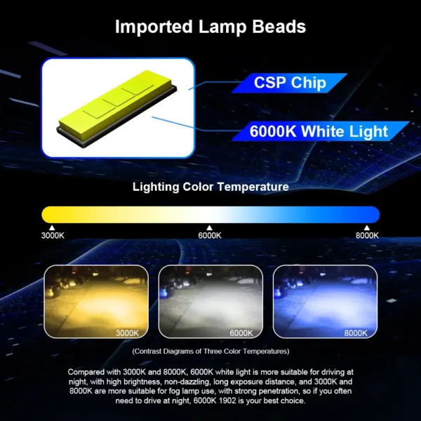 【Super Bright and High Performance】- LED Bulbs are equipped with top automotive-grade LED chips that provide an impressive output of 360W and 55,000 lumens in total.With a cool white color temperature of 6000K, these bulbs deliver a super bright beam pattern that is 300% brighter than your original halogen bulbs.Experience enhanced visibility and safety on the road.